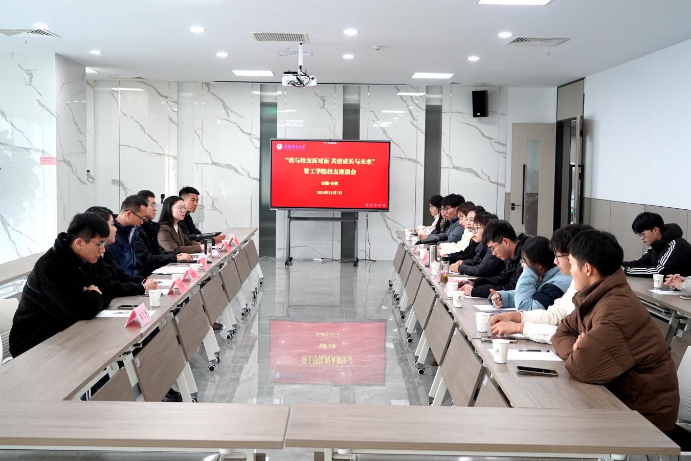 联动校友资源,赋能生涯规划。12月7日上午,宣传部党支部与管工学院学生管工类第二党支部在安徽财经大学合肥中心开展“我与校友面对面 共话成长与未来”座谈会,学院邀请了7位校友进行经验分享。座谈会上,7位校友分别从个人成长经历、大学生就业现状、未来就业形势分析等方面展开分享,鼓励学弟学妹们要顺应时代发展,认清目标和方向,把握好大学里提升自我的机会与平台,夯实未来就业基础。两个党支部师生党员针对就业机遇、专业前景、技能学习等方面与校友展开积极的互动交流。当日下午,全体师生党员共同参观了浙江大华技术股份有限公司合肥分公司,通过面对面深入交流,推进学生党建工作与人才培养工作的深度融合。