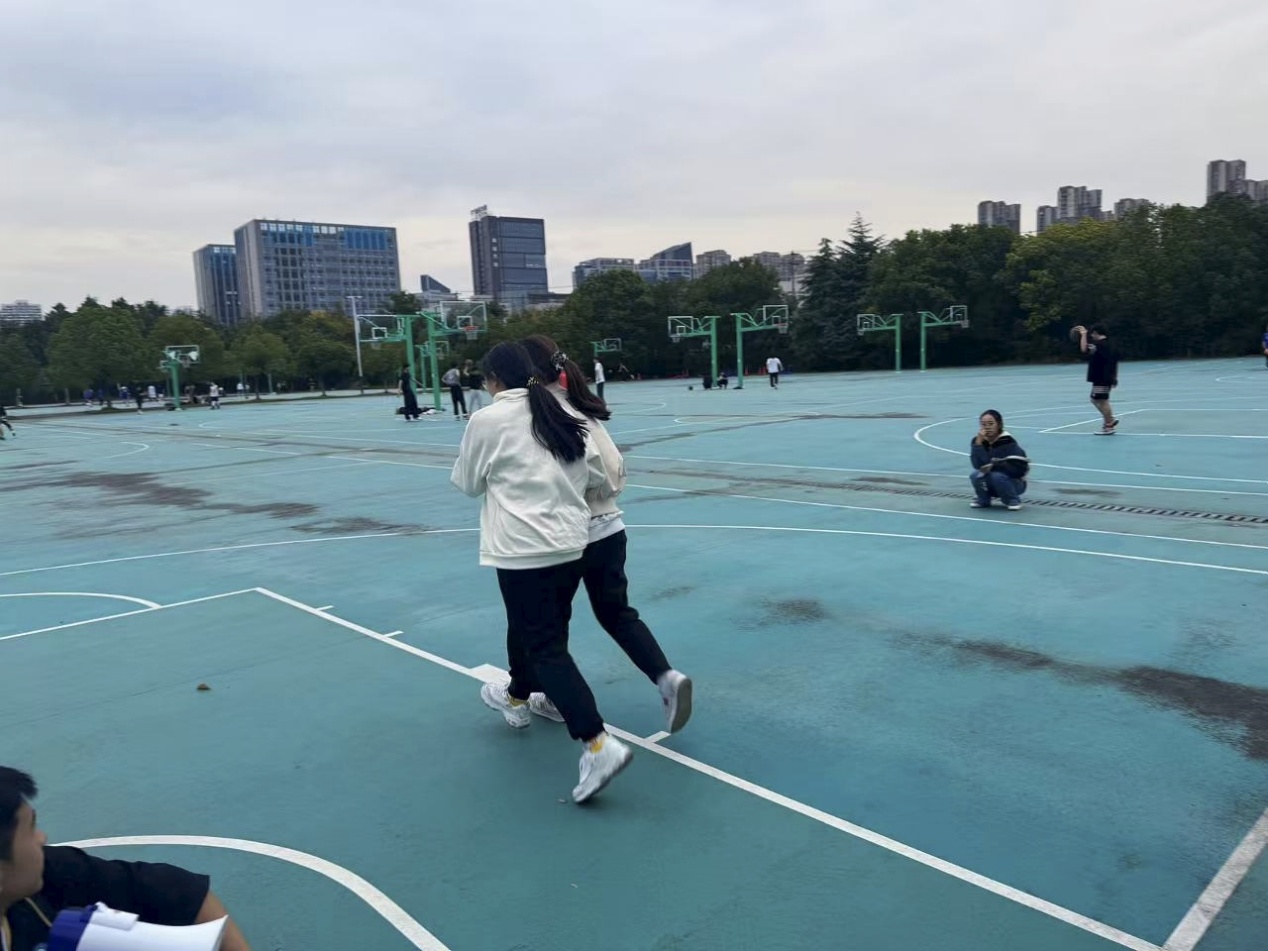 紧随其后的是趣味十足的“两人三足”接力赛。该项目要求两人一组,将相邻的腿用绳子绑在一起,以最快的速度走完两个篮球场的距离。比赛前,不少选手在练习时因步伐不协调而踉跄,甚至“人仰马翻”,引得观众捧腹大笑。但正式开赛时,参与者们迅速调整策略,或一高一矮互补身高差,或一快一慢协调节奏,现场热闹非凡。